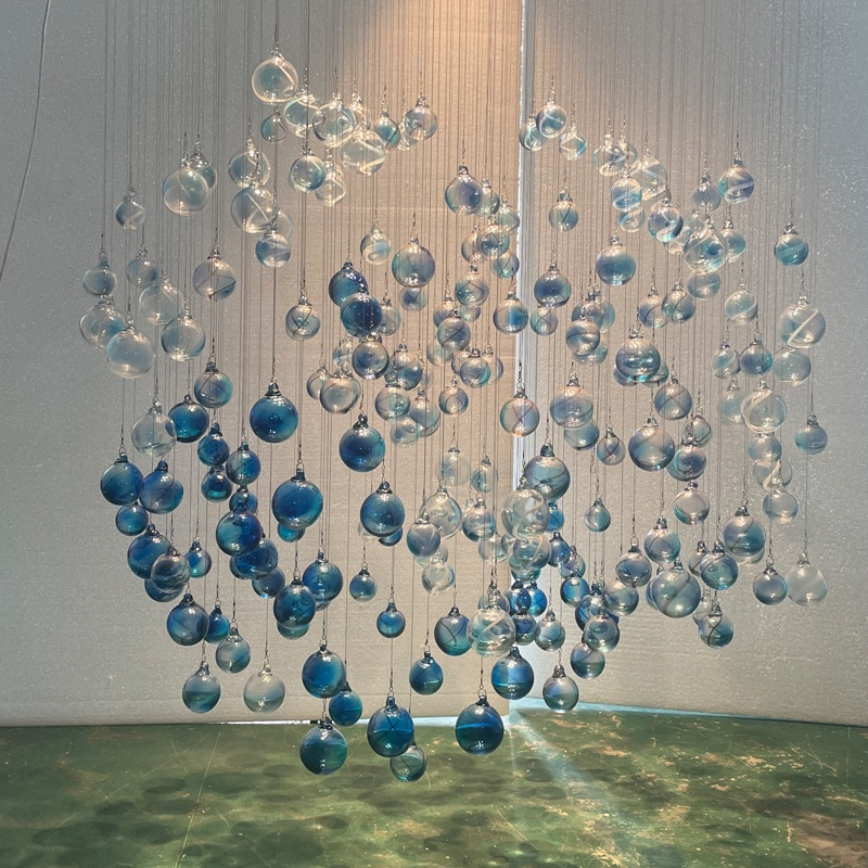 When the soft light pours down through the crystal – clear glass balls, the entire space is instantly imbued with a dynamic atmosphere. It is not just a lighting tool, but also a creative lighting decoration that can enhance the style. The personalized chandelier design meets people’s pursuit of uniqueness and quality, making every corner exude its exclusive charm. Whether savoring quiet moments alone or gathering joyfully with relatives and friends, Gusurelighting’s handmade glass lighting fixtures can create a warm and romantic atmosphere, adding a touch of gorgeous color to life.